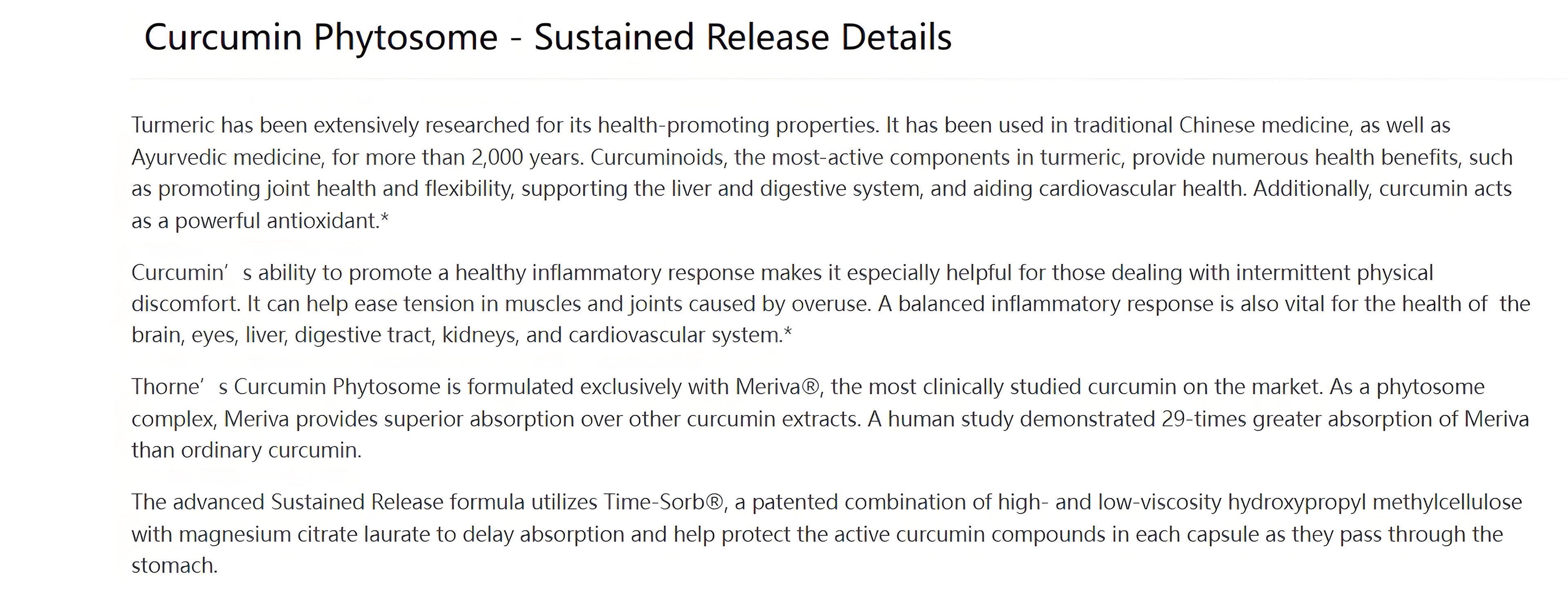 - Meriva’s phosphatidylcholine complex enhances curcumin bioavailability, ensuring better absorption than standard curcumin. It’s also soy-free, gluten-free, and hypoallergenic.